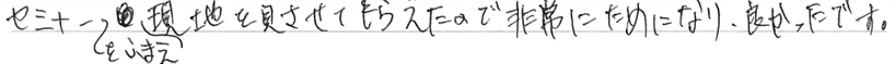 セミナーをふまえ現地を見せてもらえたので、非常にためになり良かったです。- 横浜市30代女性