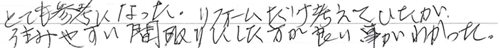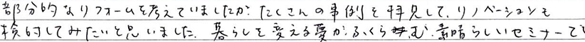 とても参考になった。リフォームだけ考えていたが、住みやすい間取りにしたほうが良いことがわかった。- 川崎市60代女性
